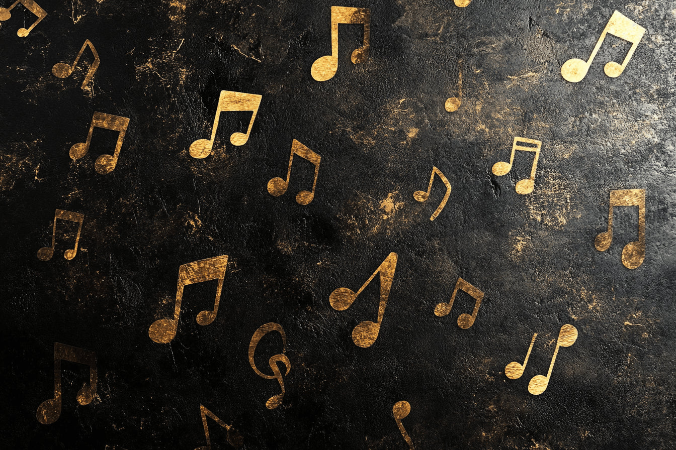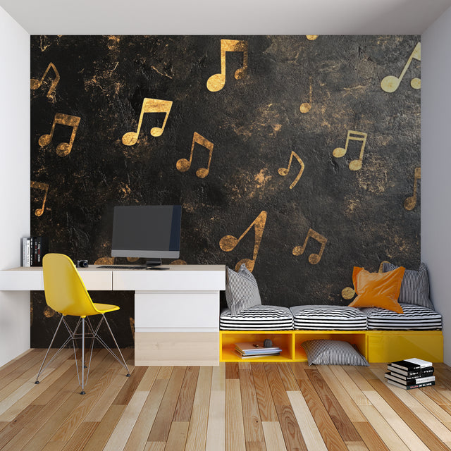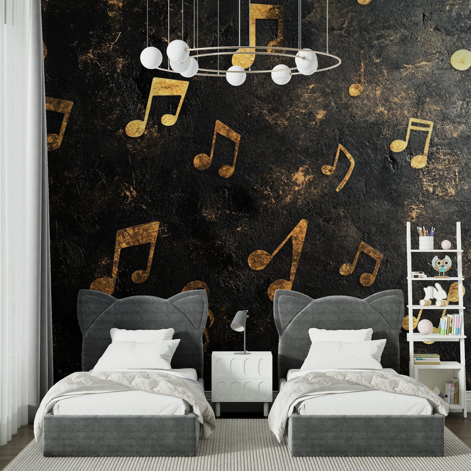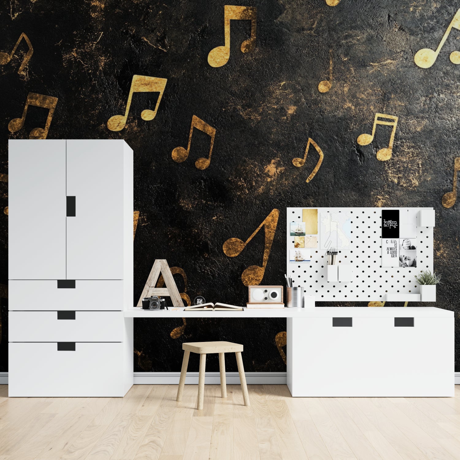 Papier Peint Mural Musical | Design de Notes de Musique Noires et Dorées