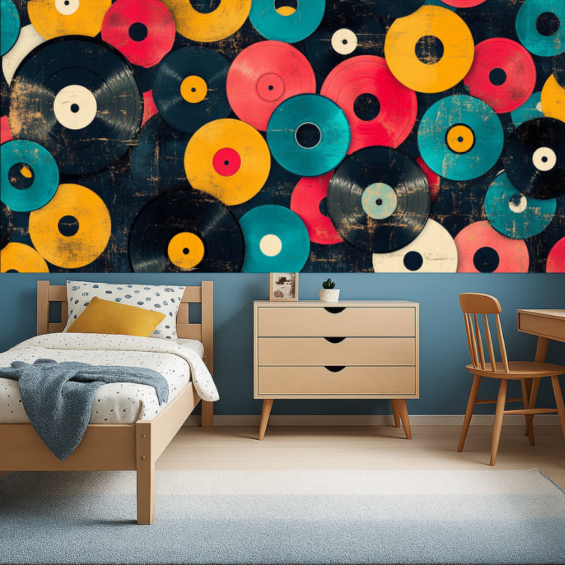 Papier Peint Mural Musique | Design Rétro Disques Vinyles