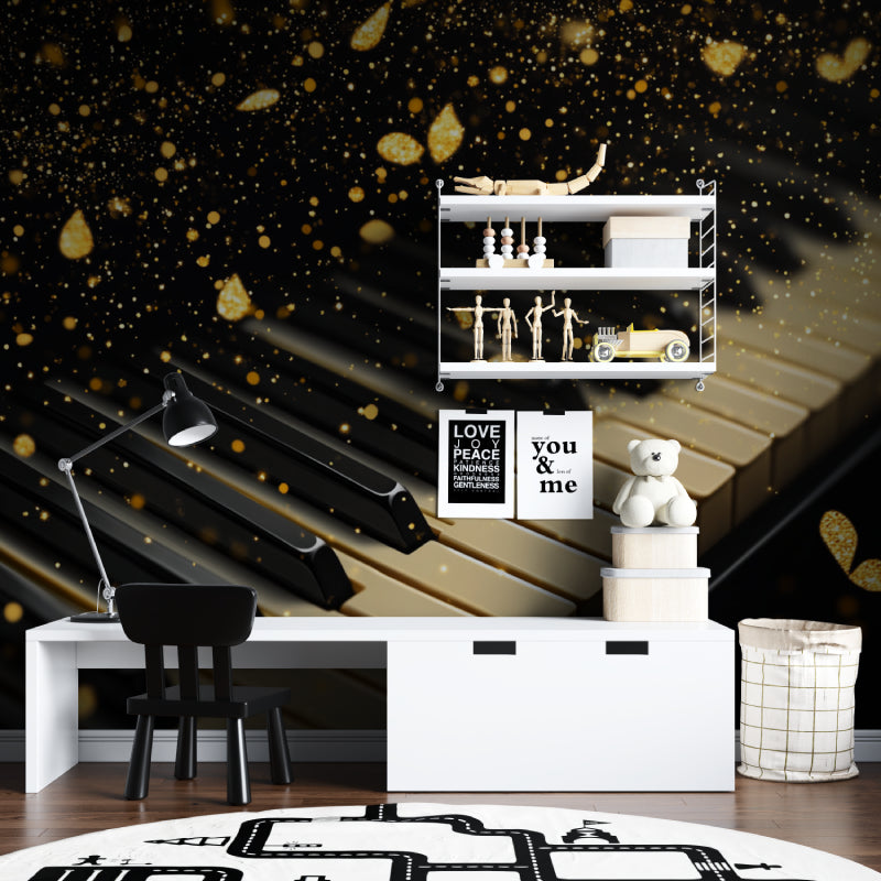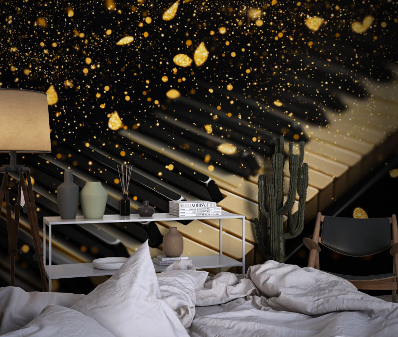 Papier Peint Mural Musical | Touches de Piano avec Paillettes Dorées