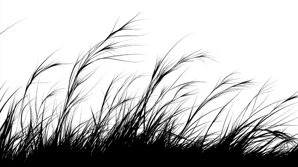 Papier Peint Mural Nature | Silhouette d'Herbe Sauvage Noir et Blanc