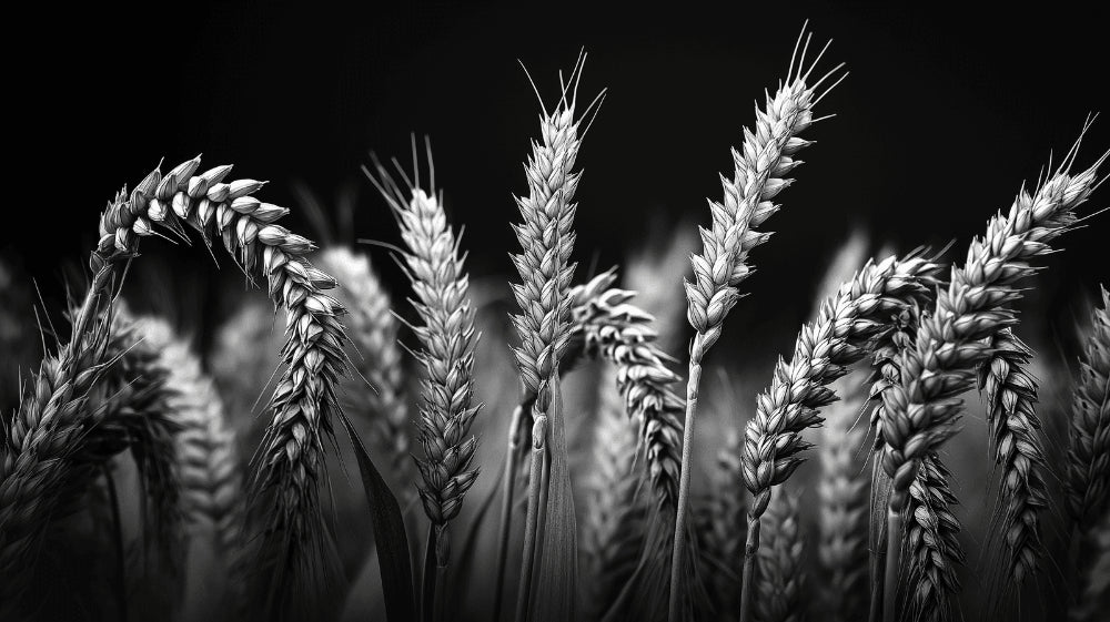 Cette murale de blé en noir et blanc apporte la beauté silencieuse de la nature à l'intérieur.