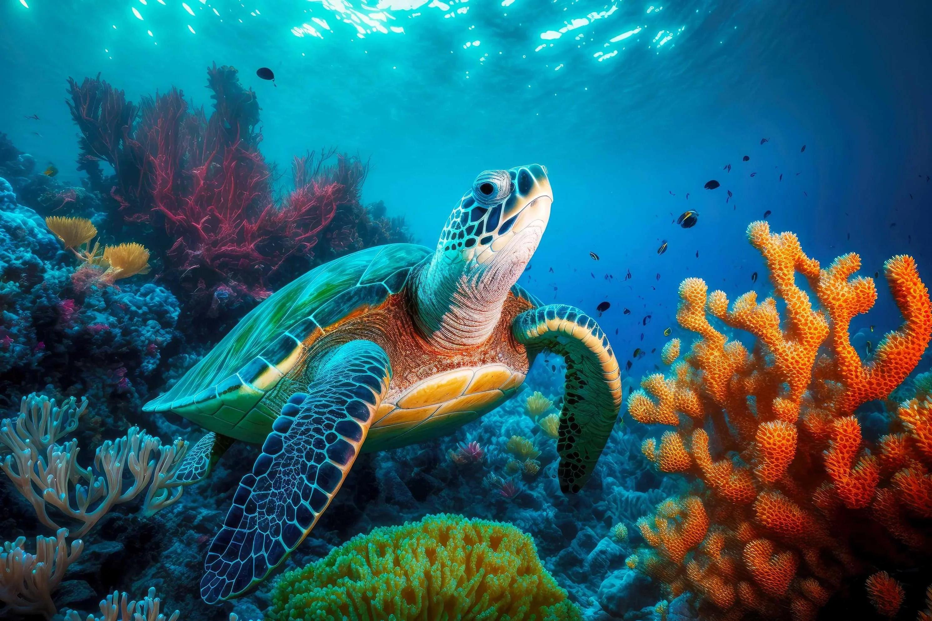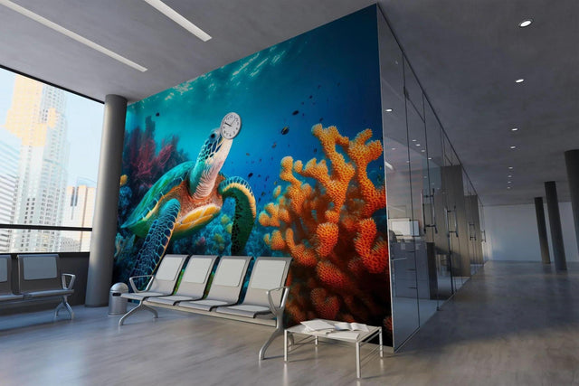 Papier Peint Mural Océan | Design Tortue de Mer et Récif de Corail