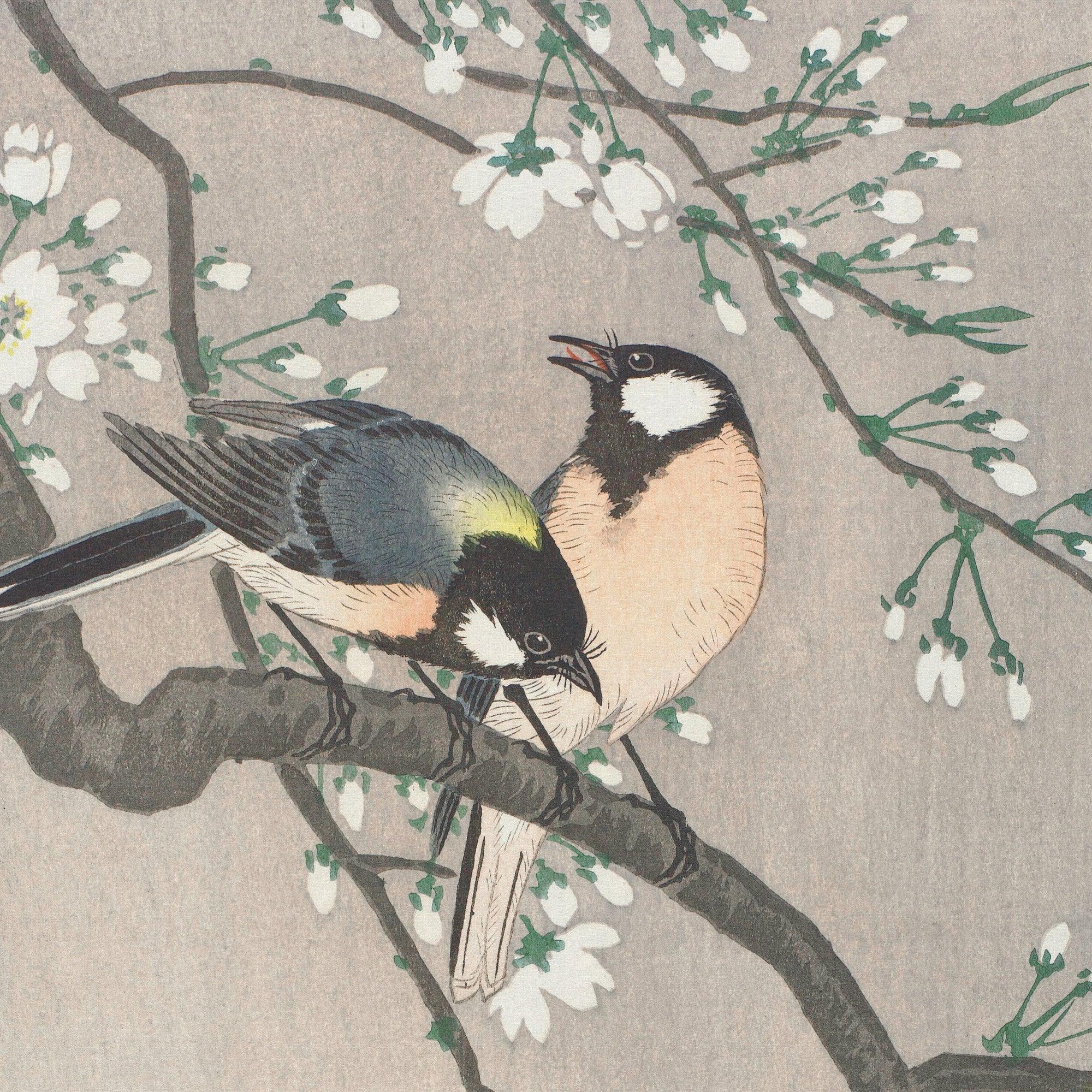 Papier Peint Mural Oiseaux Japonais | Art Branche de Fleurs de Cerisier