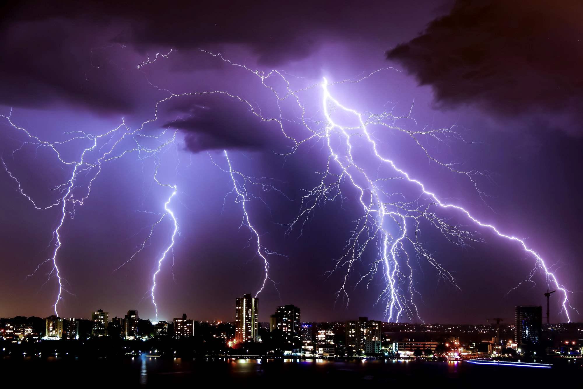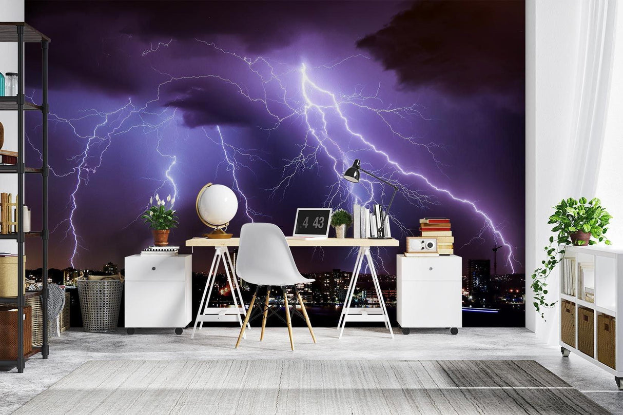 Papier Peint Mural Orage Électrique | Tonnerre du Ciel Urbain Nocturne