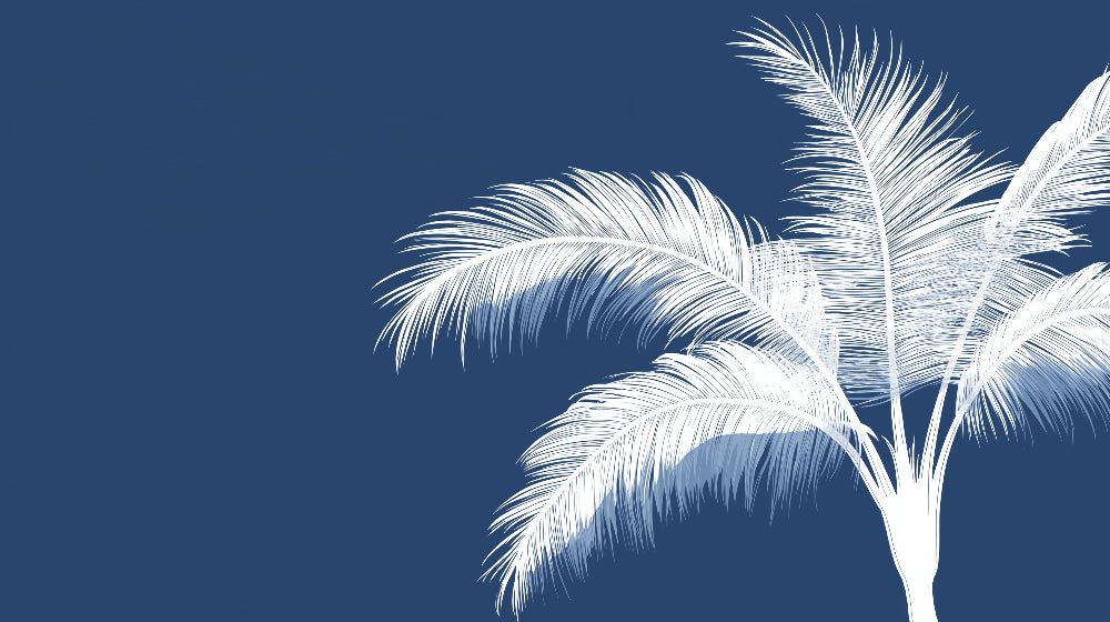 Papier Peint Mural Palmier | Silhouette Blanche sur Bleu Marine