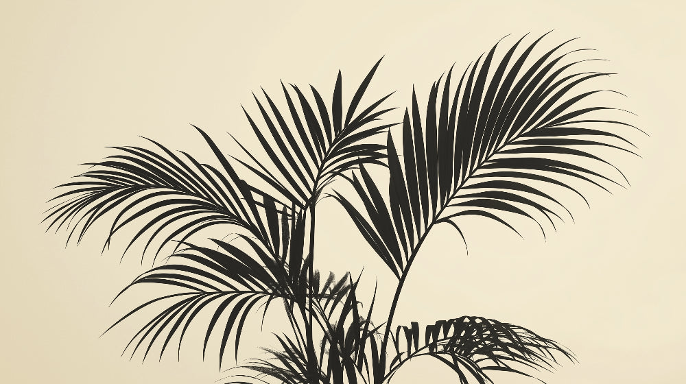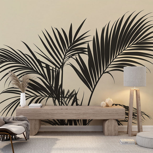 Papier Peint Mural Feuille de Palmier | Silhouettes Noires sur Beige