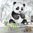 Papier Peint Mural Panda | Design Forêt de Bambous Noir et Blanc
