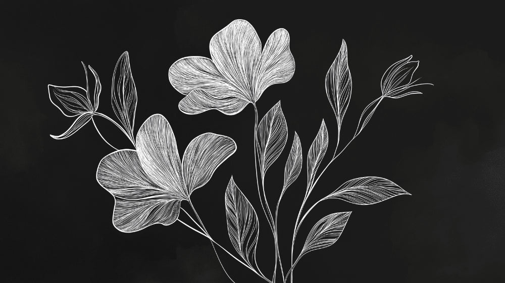 Papier Peint Mural Floral | Design en Art Linéaire Noir et Blanc
