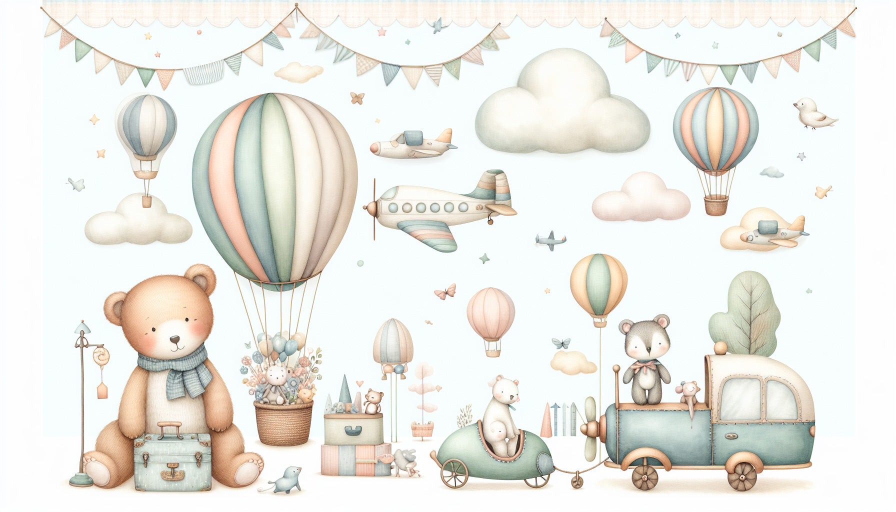 Papier Peint Mural Enfants | Montgolfières et Aventure avec Teddy