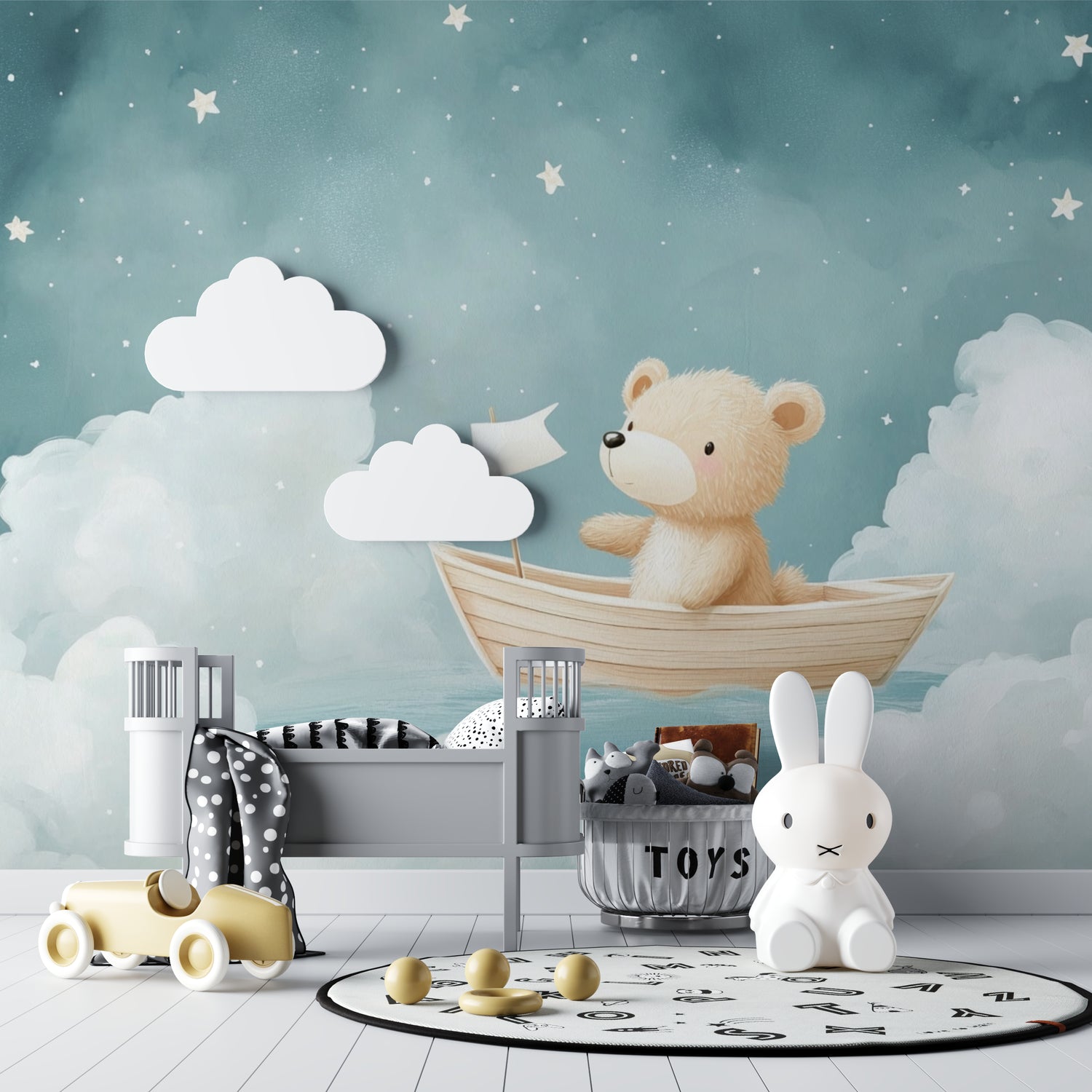 Papier Peint Mural pour Enfants | Aventure de Voile de l'Ours en Peluche