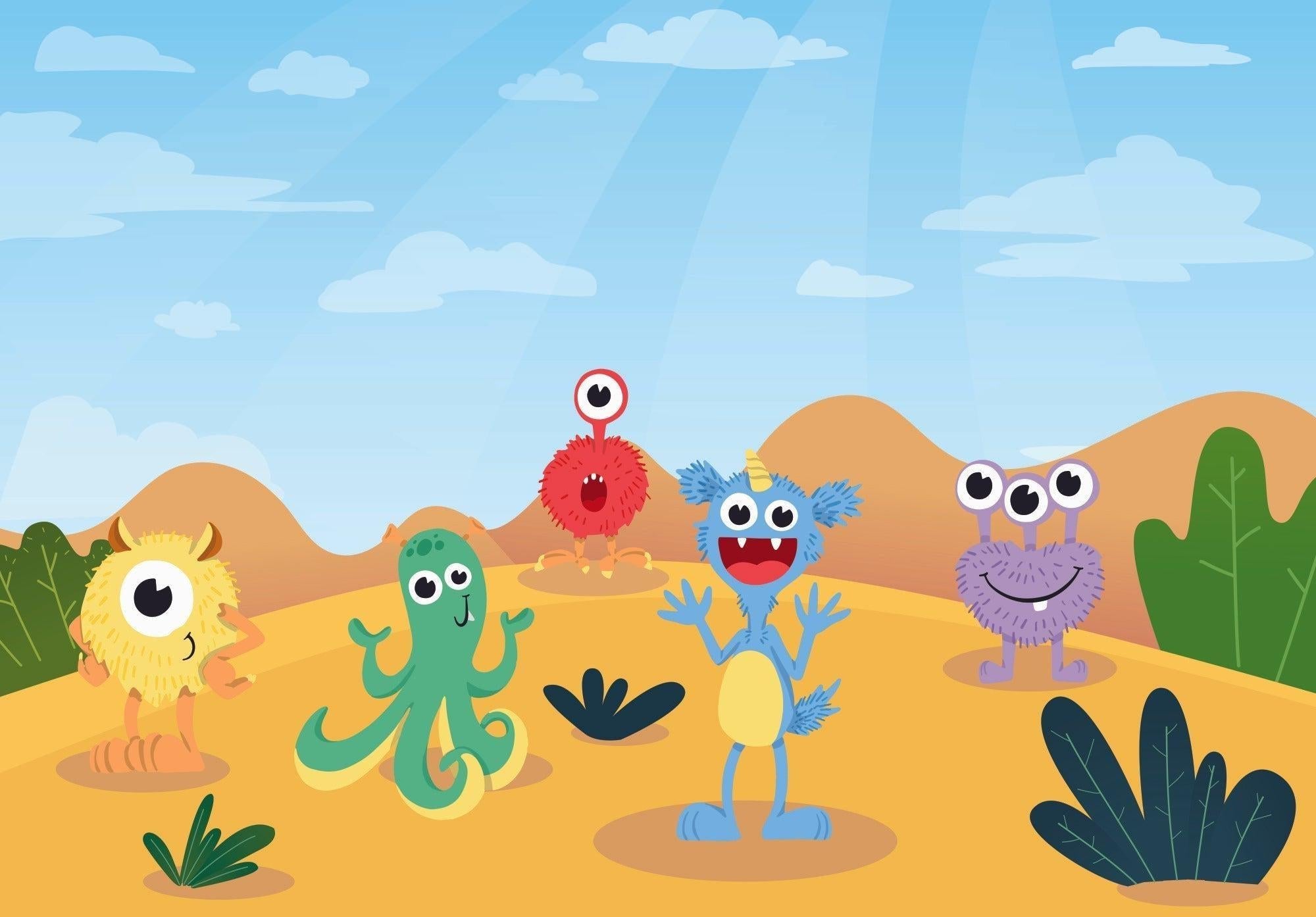 Papier Peint Mural pour Enfants | Design de Personnages Monstres Ludiques