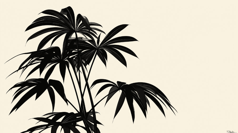 Papier Peint Mural Feuilles de Palmier | Silhouette Noire sur Beige