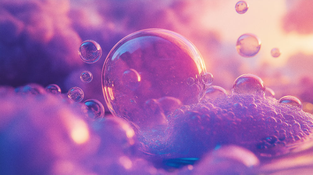 Ce papier peint abstrait à bulles enchanteur capture une vue macro fascinante de sphères irisées flottant sur un fond crépusculaire onirique. La composition présente des bulles cristallines de différentes tailles, chacune reflétant et réfractant la lumière de manière magique. Des violets profonds se mêlent harmonieusement à des roses doux et des touches de bleu, créant un papier peint abstrait violet qui semble rayonner d'une luminescence intérieure.