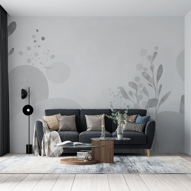 Papier Peint Mural Abstrait | Design Floral Gris Minimaliste
