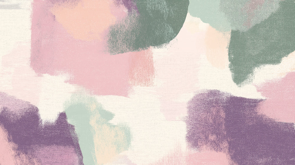 Papier Peint Mural Abstrait | Pinceaux Pastel Rose et Sauge
