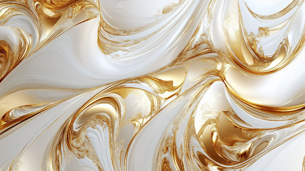 Papier Peint Mural Abstrait | Tourbillons Luxueux Or et Blanc