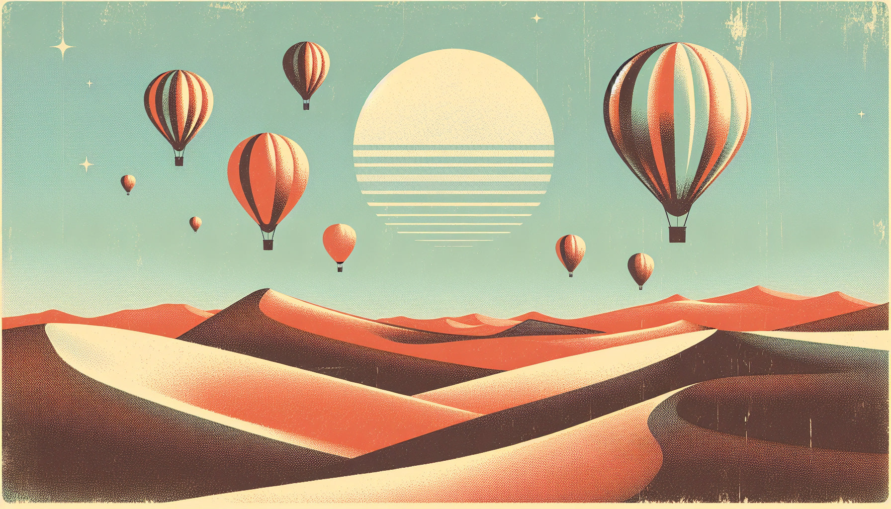 Papier Peint Mural Montgolfière | Coucher de Soleil Rétro dans le Désert