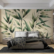 Papier Peint Mural Bambou | Feuilles Vertes Botaniques sur Beige
