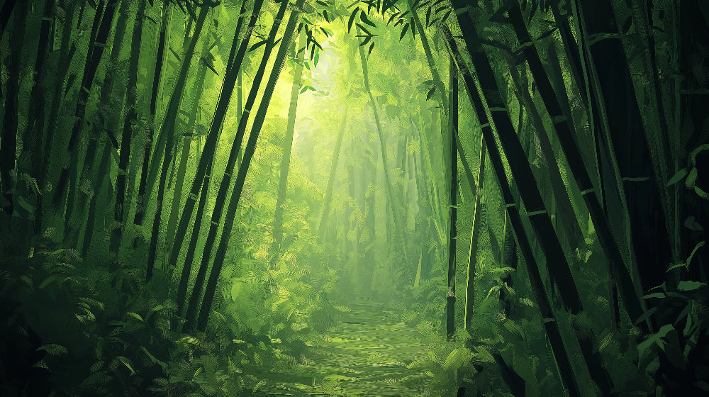 Papier Peint Mural Bambou | Design Sentier Forestier Ensoleillé