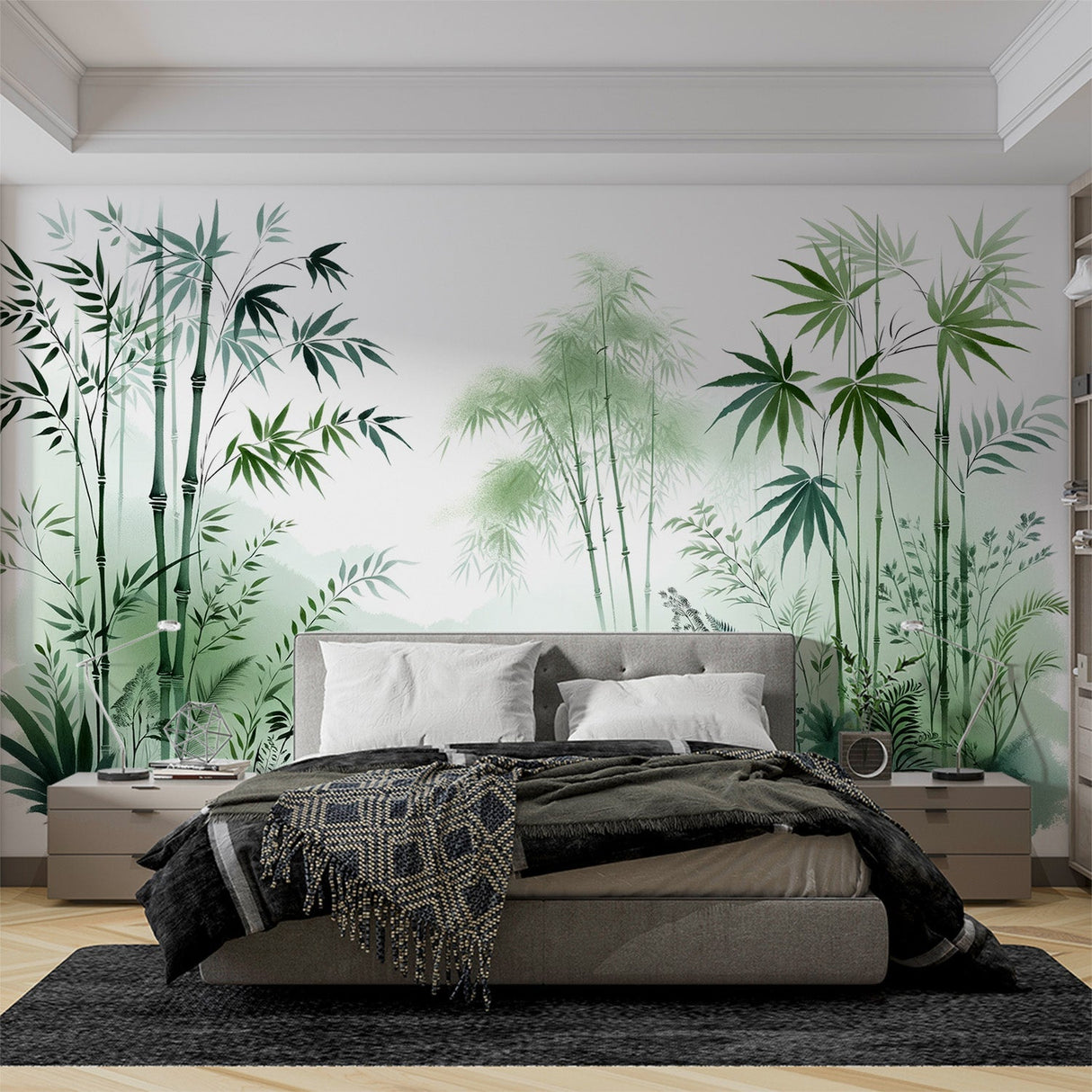 Papier Peint Mural Bambou | Design Aquarelle Jardin Oriental
