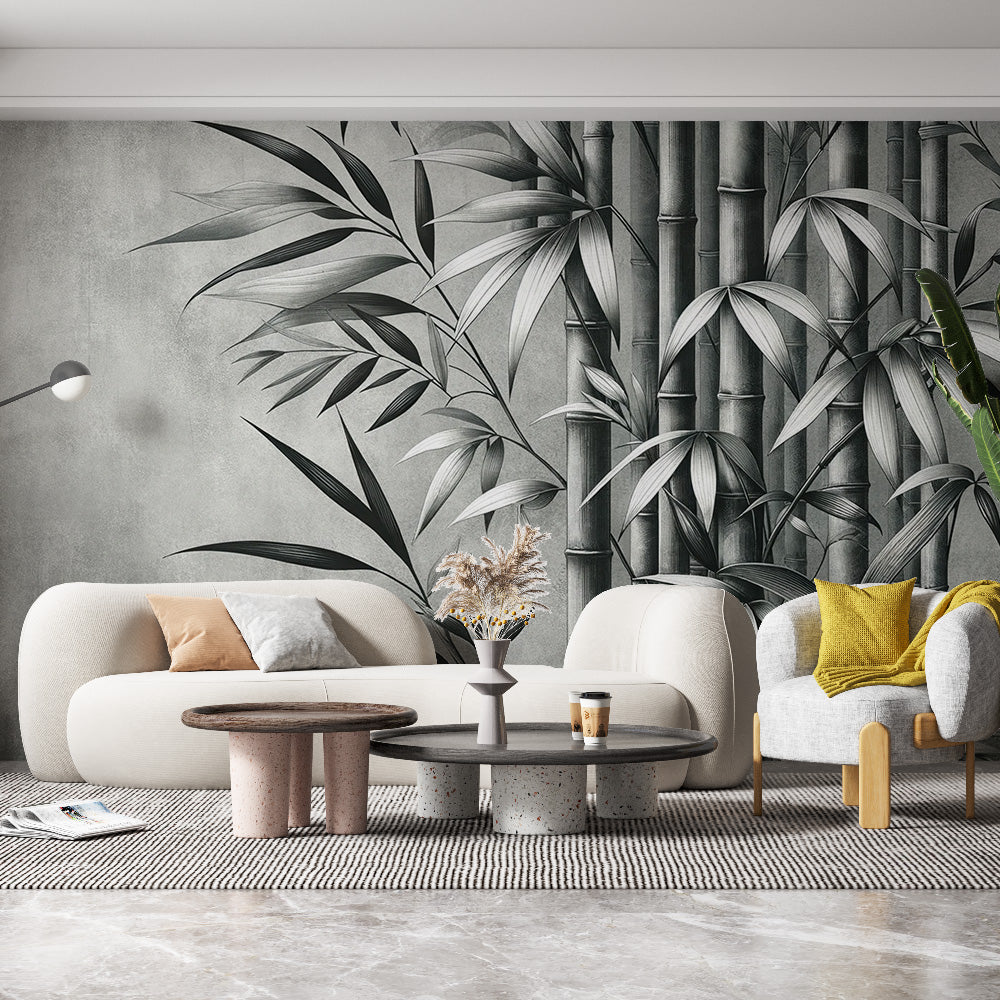 Papier Peint Mural Bambou | Design Forêt Asiatique Monochrome