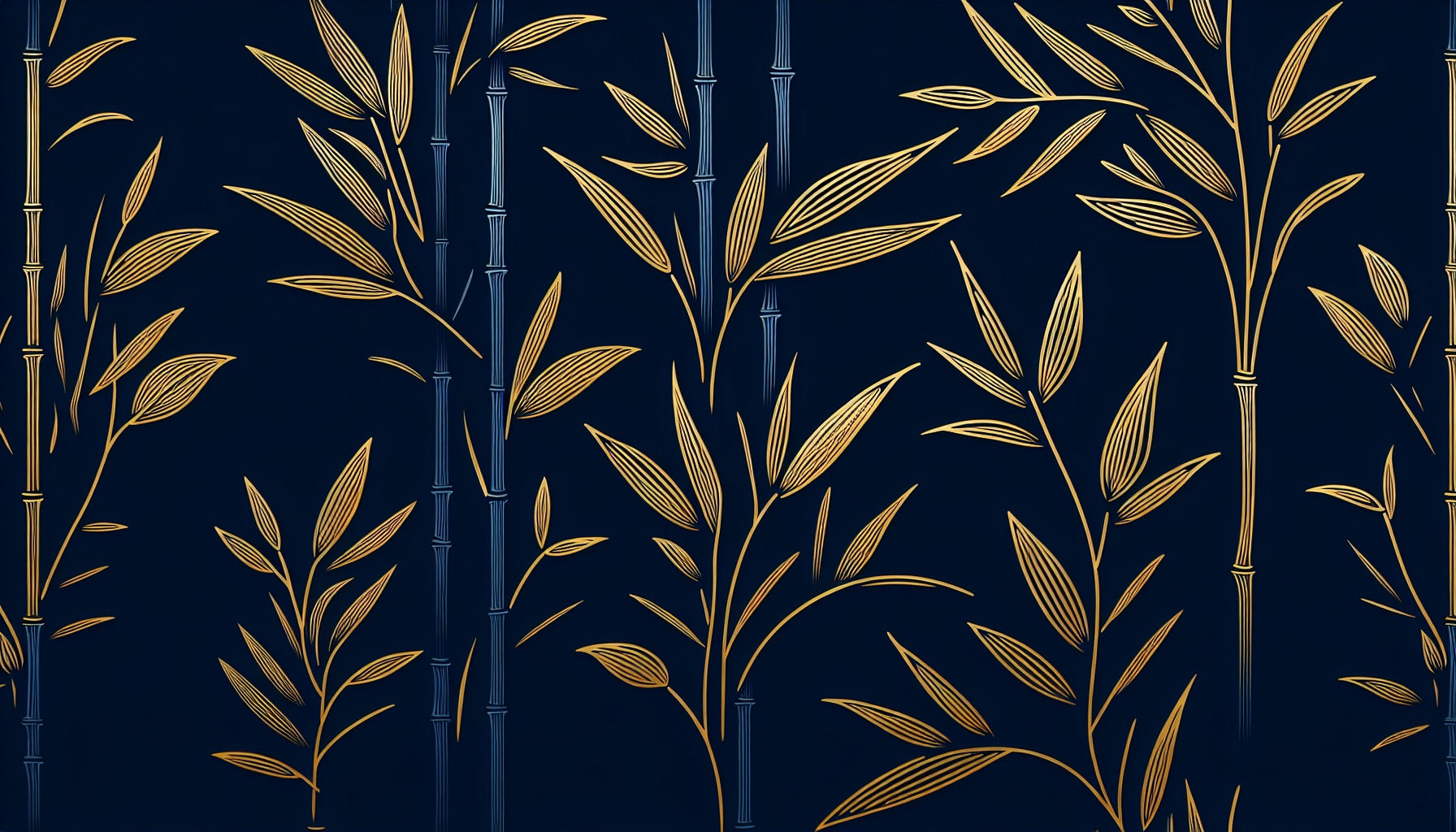 Ce papier peint mural en bambou présente une élégante interaction entre des tiges bleu marine et des feuilles dorées, créant un motif oriental sophistiqué. Le travail délicat des lignes du papier peint bambou doré apporte une touche artistique au fond bleu marine profond, tandis que les accents métalliques captent et reflètent la lumière avec une brillance subtile. Chaque feuille dorée est minutieusement détaillée, créant un rythme harmonieux sur la surface du mur.