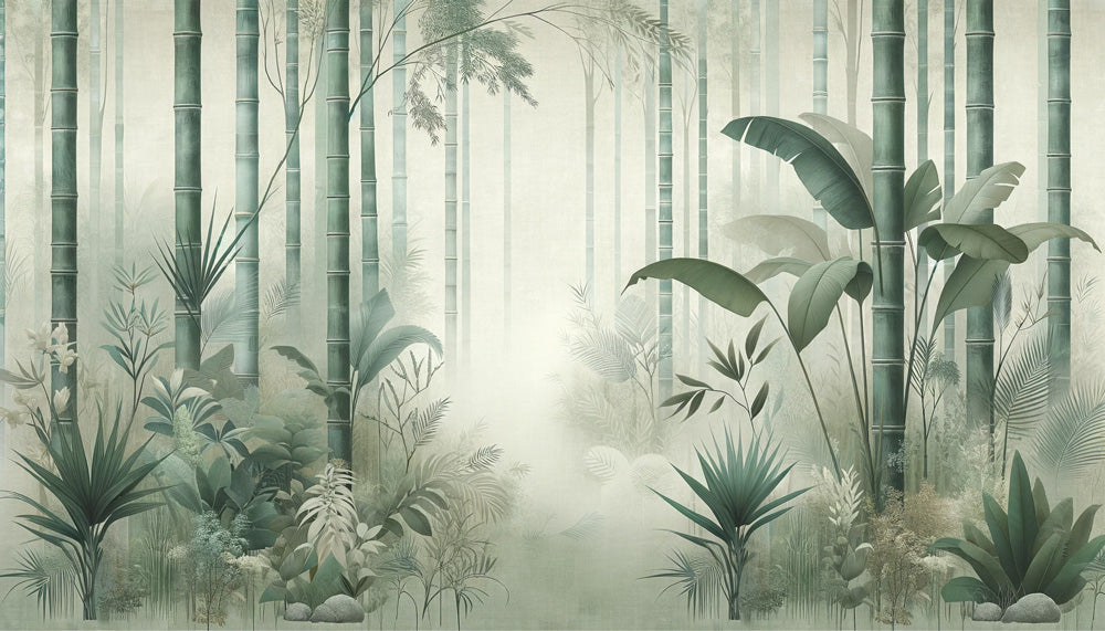 Papier Peint Mural Bambou | Brume Verte Tropicale de Forêt