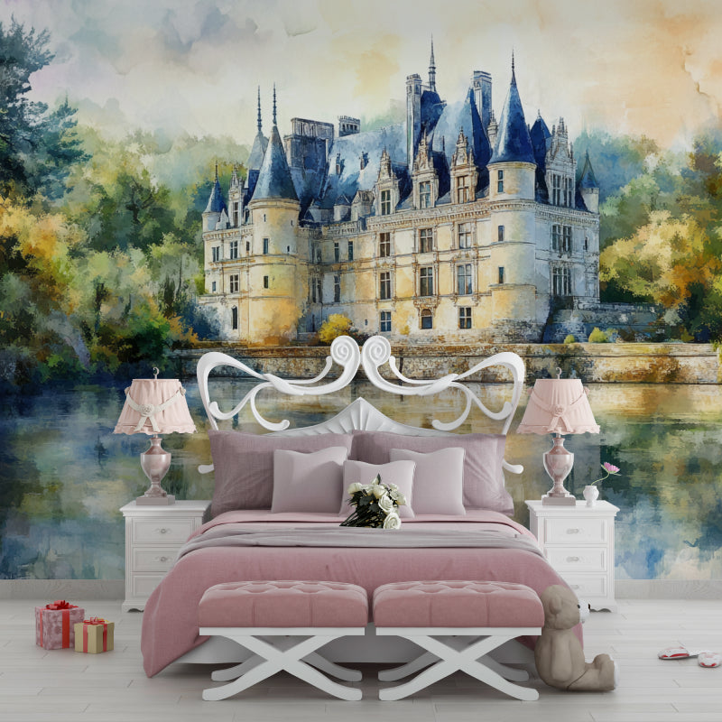 Papier Peint Mural Château | Architecture Française Aquarelle