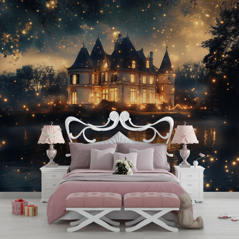 Papier Peint Mural Château | Nuit Enchantée Avec Étoiles Dorées
