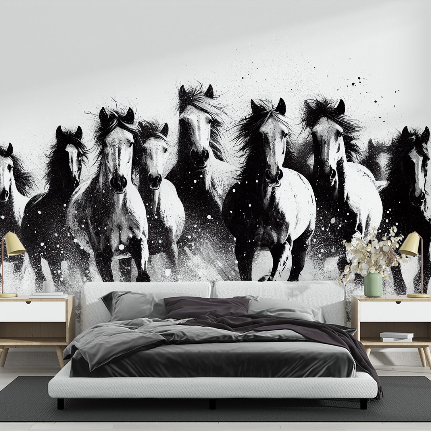 Le design monochrome épuré fait ressortir votre papier peint mural cheval.