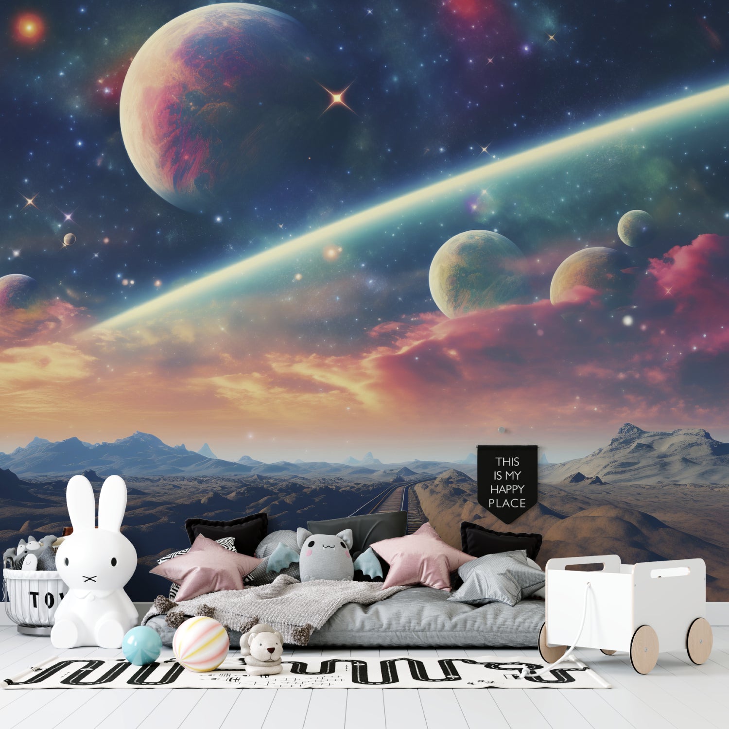Notre papier peint planètes transforme l'heure du coucher en aventure.