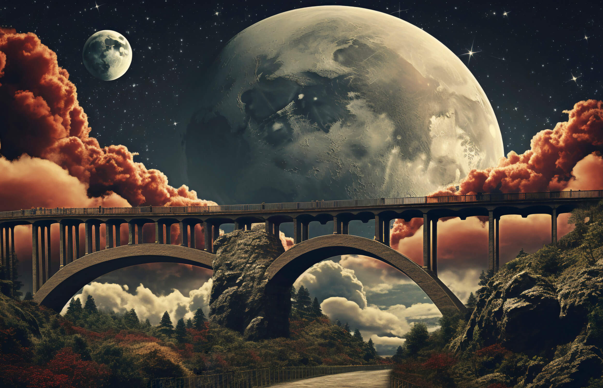 Murale pont désert cosmique spatial