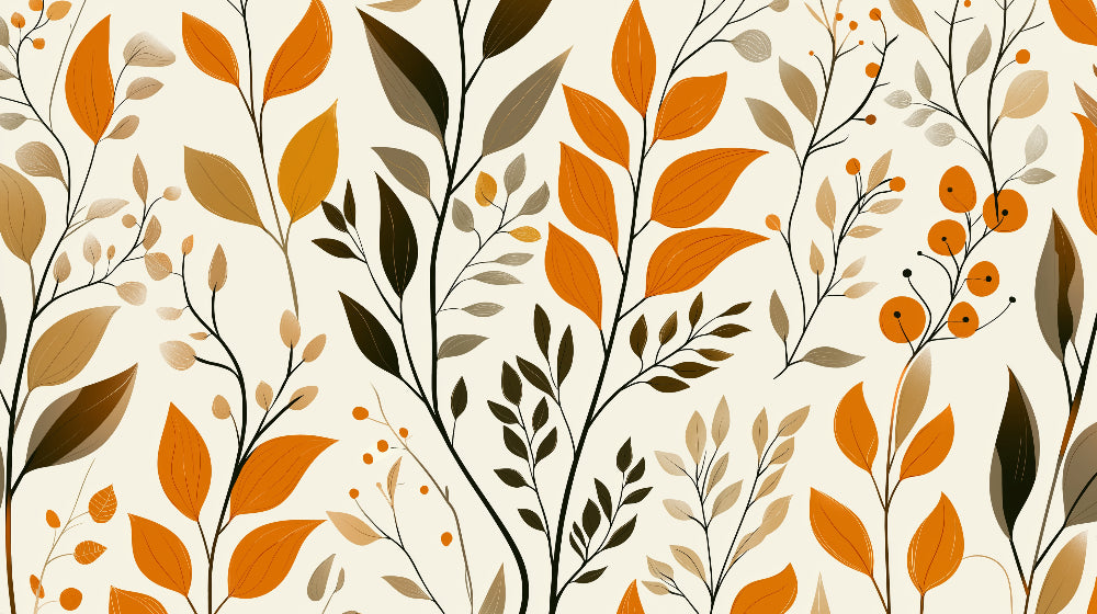 Papier Peint Mural Feuillage | Feuilles d'Automne avec Orange et Marron