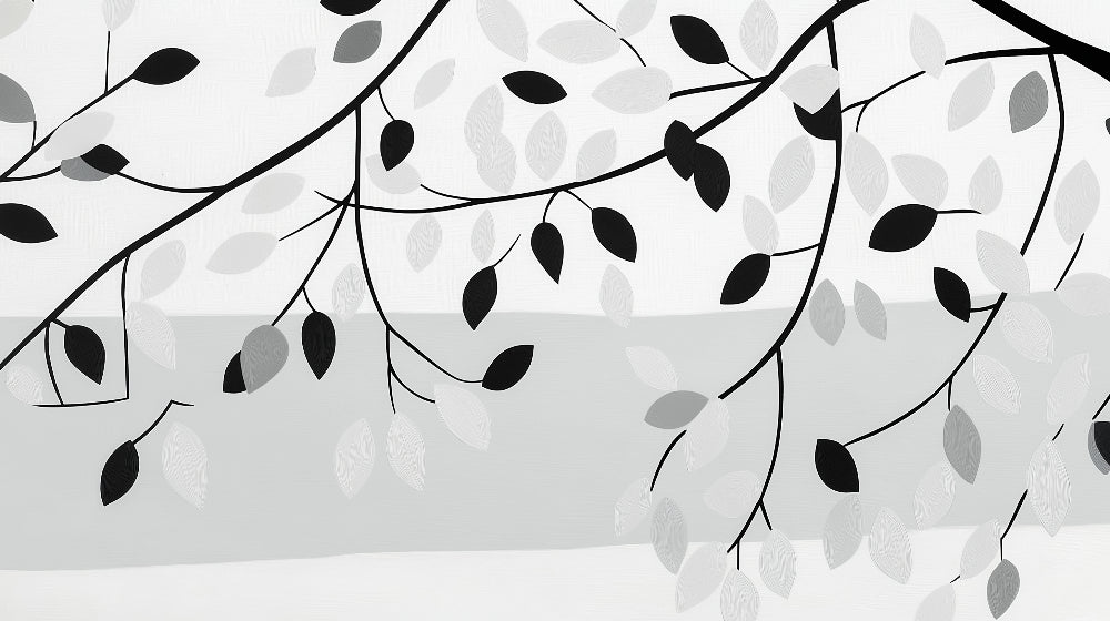 Ce papier peint feuille minimaliste présente une composition artistique de branches gracieuses ornées de feuillage stylisé dans une palette monochromatique sophistiquée. Le contraste saisissant entre les feuilles noires audacieuses et les silhouettes grises douces crée un jeu dynamique contre le fond blanc immaculé. Chaque élément de murale botanique est soigneusement positionné pour obtenir un sens du mouvement naturel et un flux éthéré, rendant ce design à la fois contemporain et intemporel.