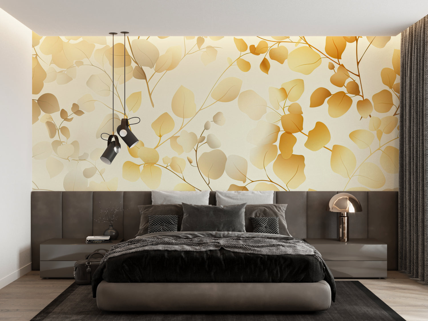 Papier Peint Mural Floral | Design Élégant Feuilles Dorées