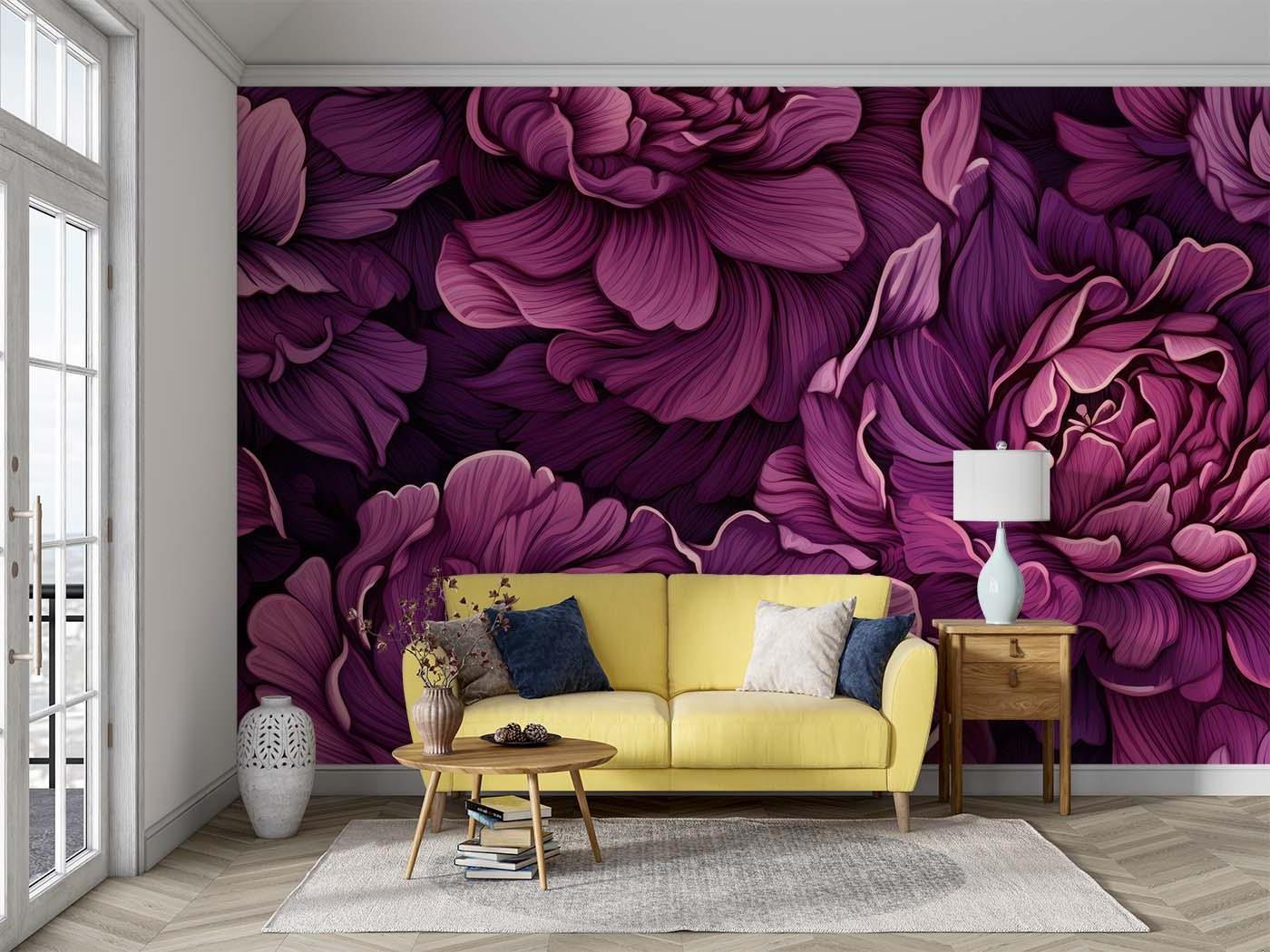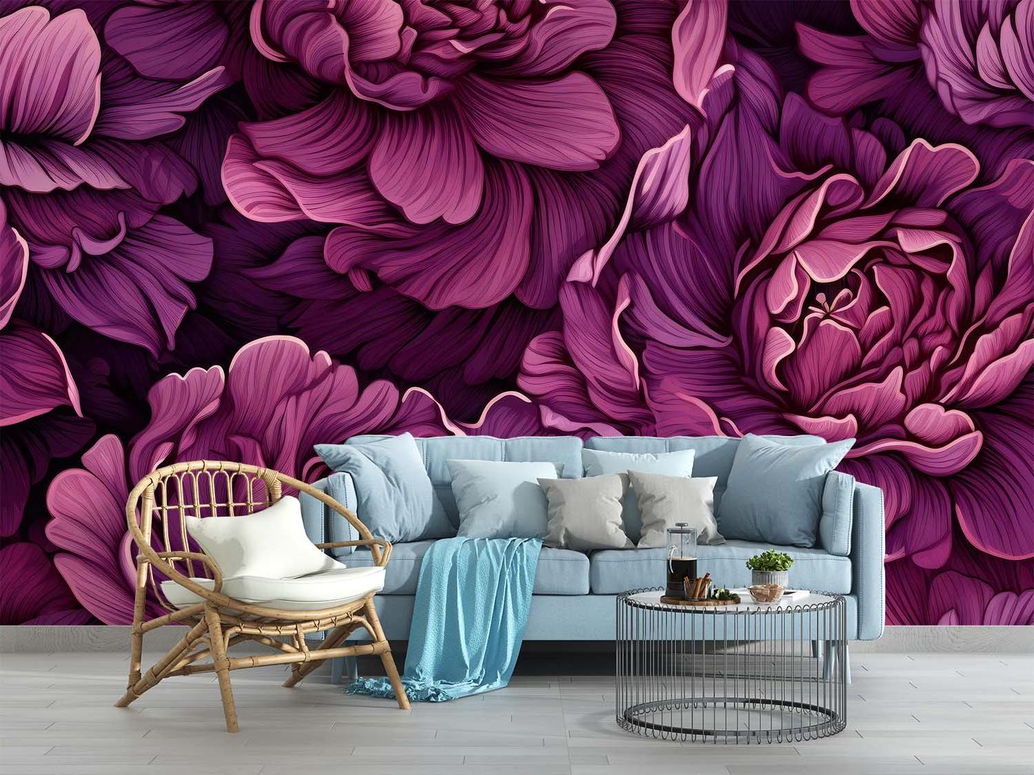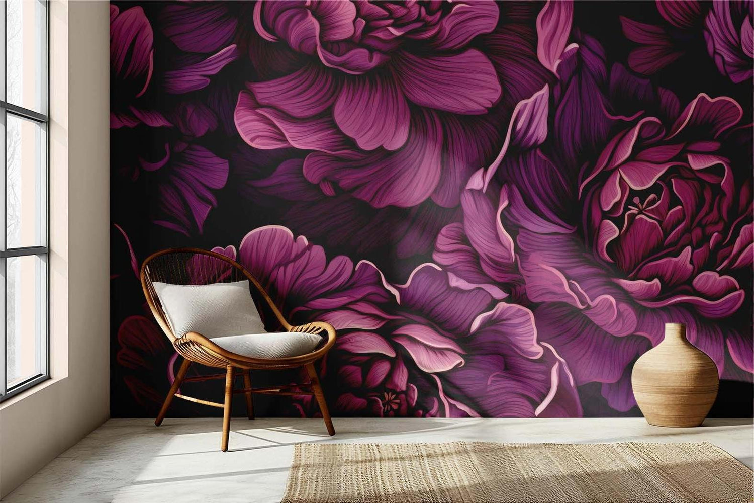 Papier Peint Mural Floral | Grand Design de Pivoine Pourpre