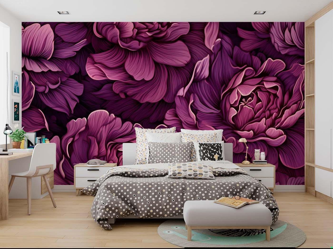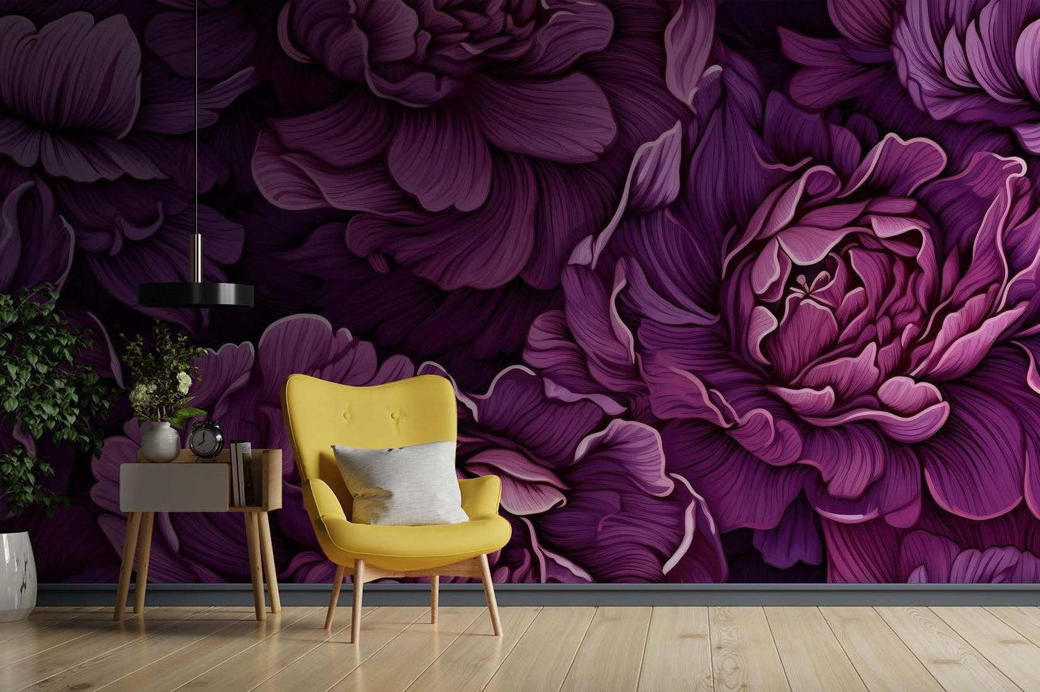Ce papier peint floral violet donne vie à des tons profonds et riches.