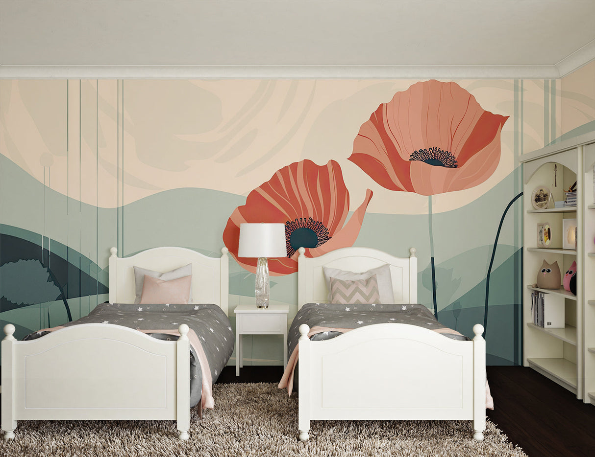 Notre fresque murale coquelicot fait office d'œuvre d'art et de papier peint en un.