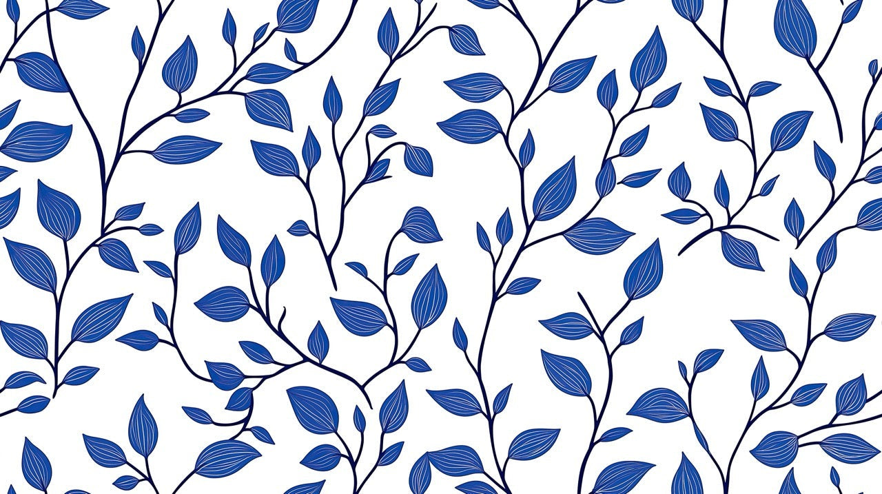 Papier Peint Mural Floral | Motif Feuilles Bleues sur Fond Blanc