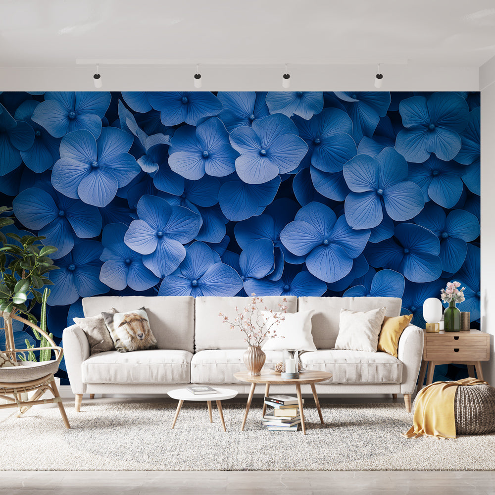 Ce papier peint hortensia bleu apporte instantanément de la vie à vos murs.