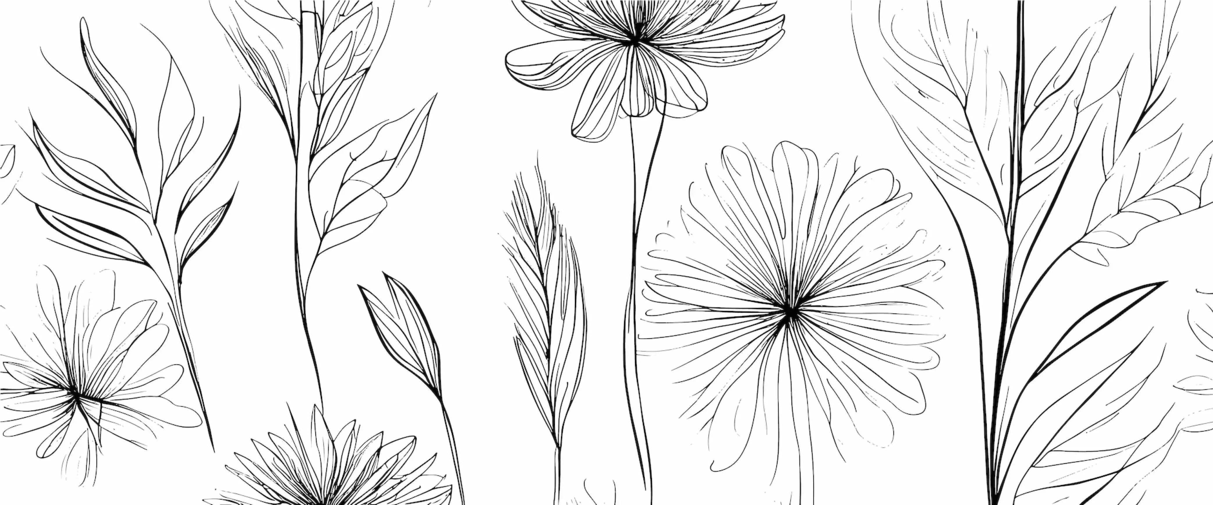 Papier Peint Mural Floral | Design en Art Linéaire Noir et Blanc
