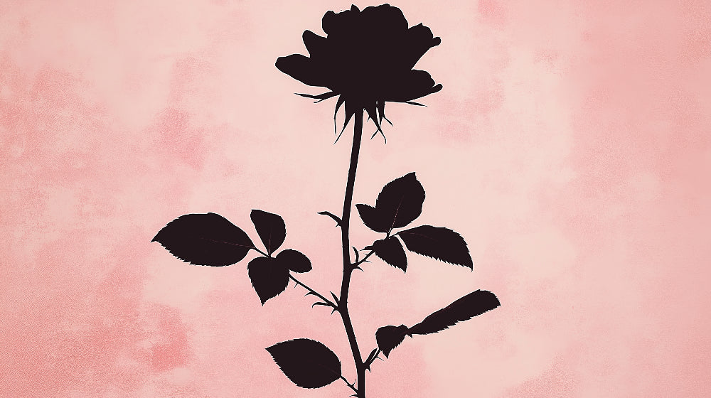 Papier Peint Mural Floral | Silhouette de Rose Noire sur Rose