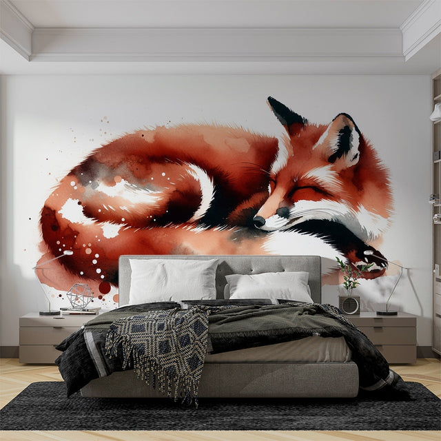 Papier Peint Mural Forêt | Design Aquarelle Renard Endormi