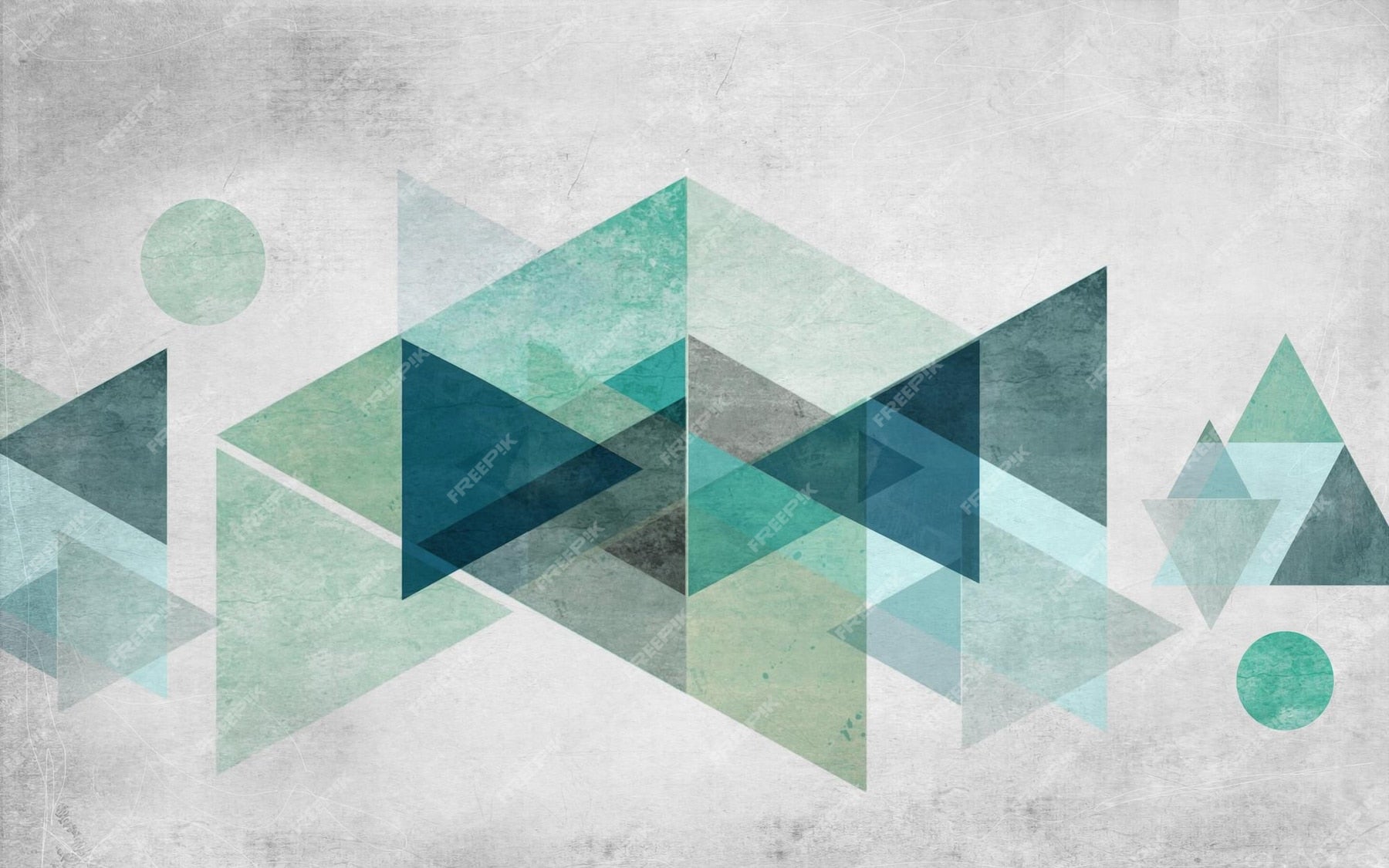 Papier Peint Mural Géométrique | Triangles Abstraits Modernes en Vert et Gris