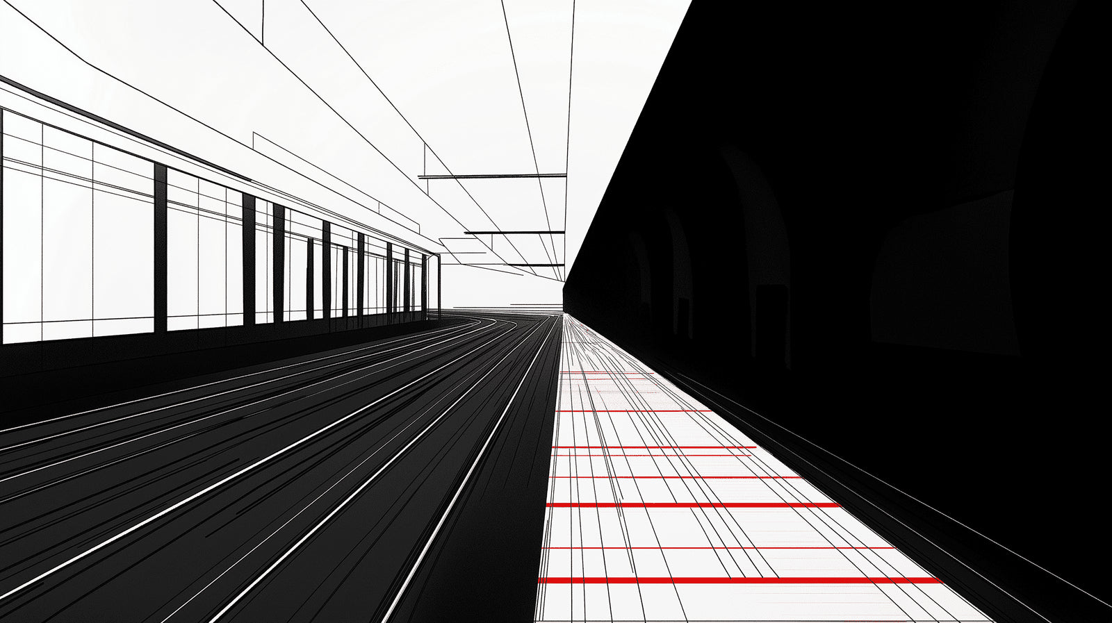 Ce papier peint perspective géométrique capture l'essence du design architectural moderne à travers une composition monochromatique saisissante. L'interaction dramatique du noir et blanc crée un couloir visuel puissant, avec des éléments linéaires précis convergeant vers un point de fuite. La fresque murale minimaliste présente des lignes géométriques audacieuses et des détails architecturaux qui attirent le regard vers un horizon infini, créant un sens extraordinaire de profondeur et de dimension.