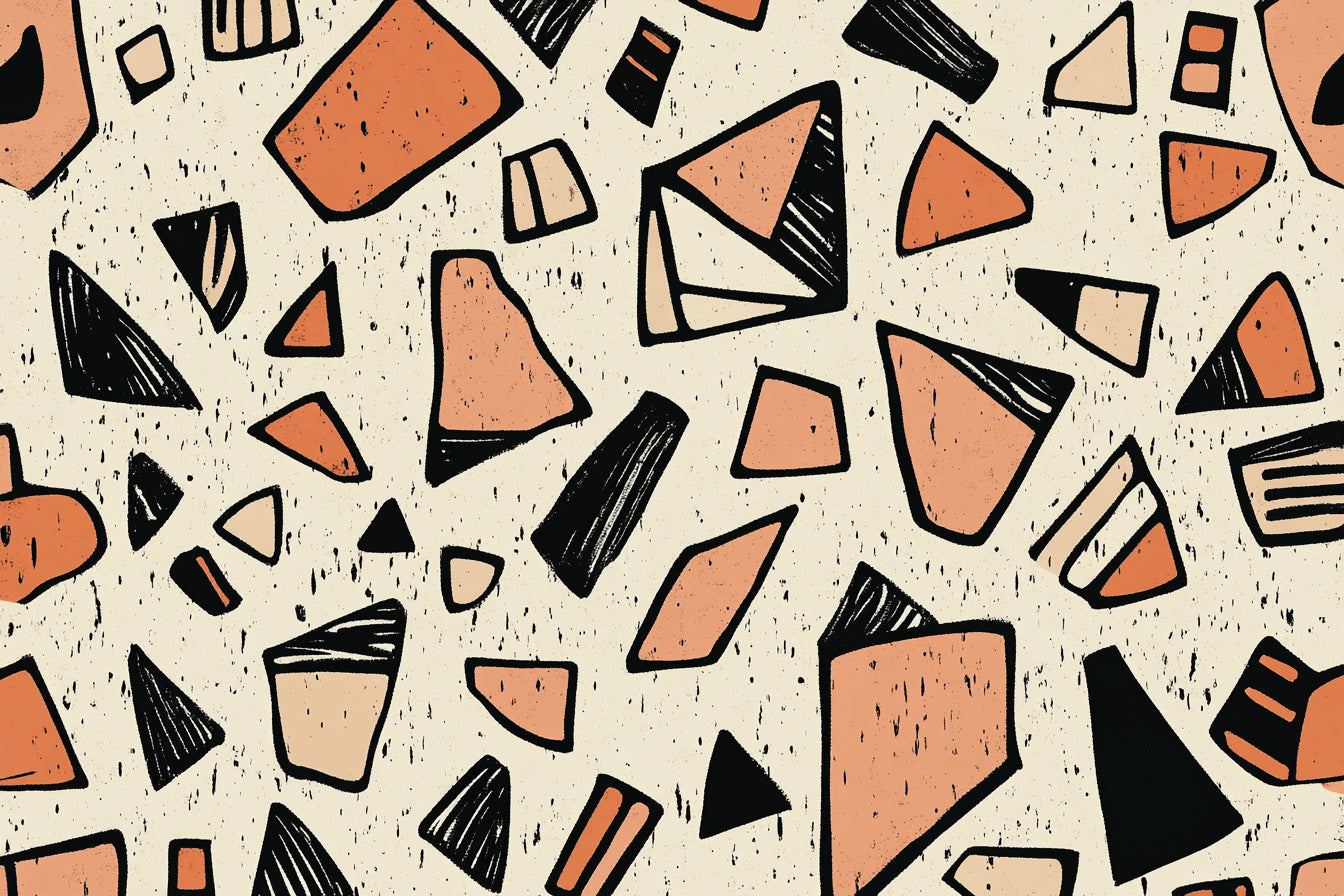 Ce papier peint abstrait géométrique présente une composition dynamique de formes terracotta et noires dispersées sur un fond beige chaud. Les formes géométriques audacieuses et irrégulières créent un rythme visuel saisissant, tandis que la qualité texturée et dessinée à la main du design ajoute une touche artistique et moderne. Le papier peint géométrique terracotta offre un équilibre délibéré entre formes organiques et angulaires, créant un motif captivant qui attire le regard sans surcharger l’espace.