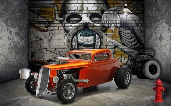 Papier Peint Mural Industriel | Hot Rod Vintage avec Art de Rue