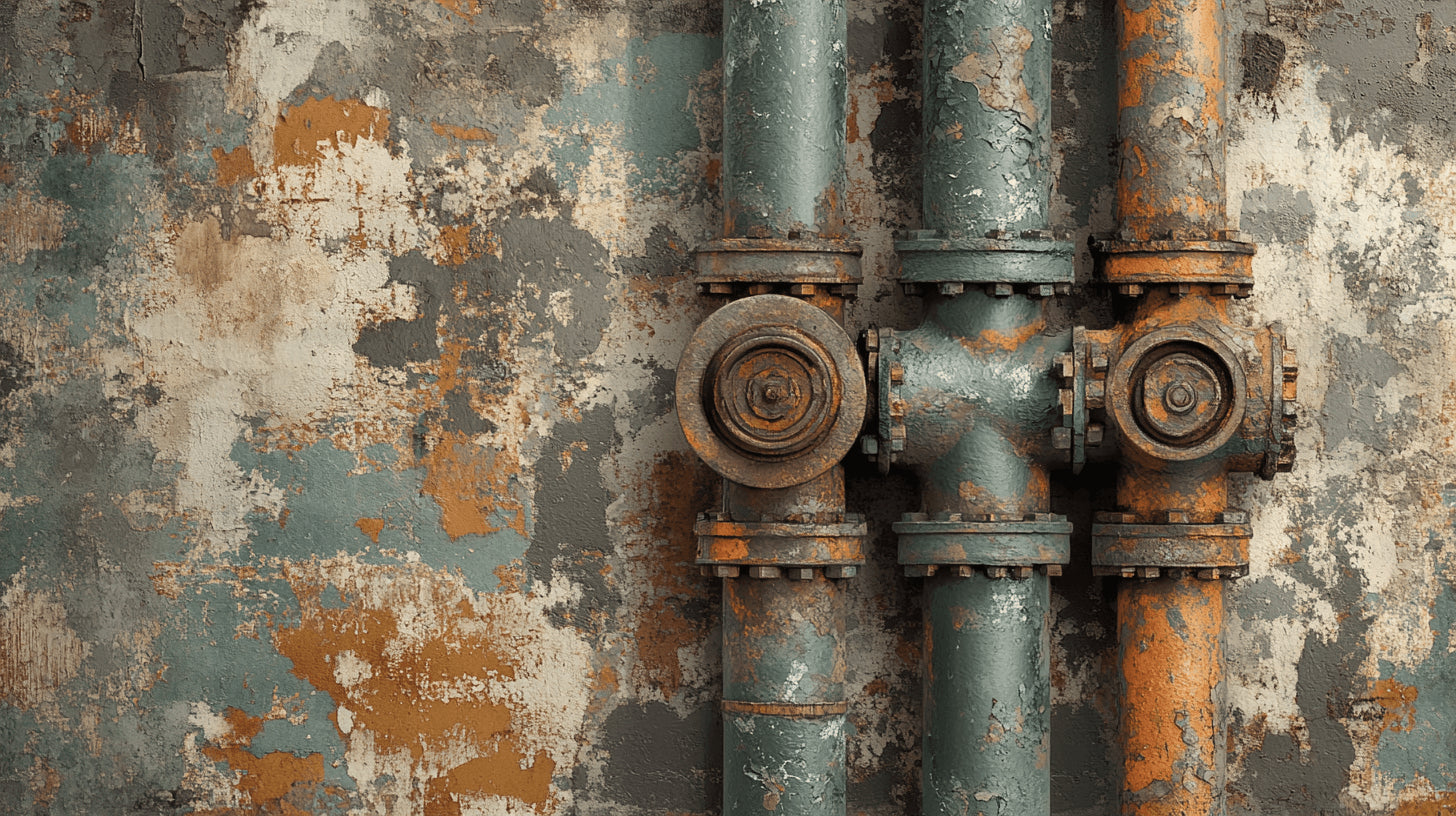 Les tuyaux et vannes usés créent une déclaration audacieuse qui transforme les murs vides en éléments architecturaux.