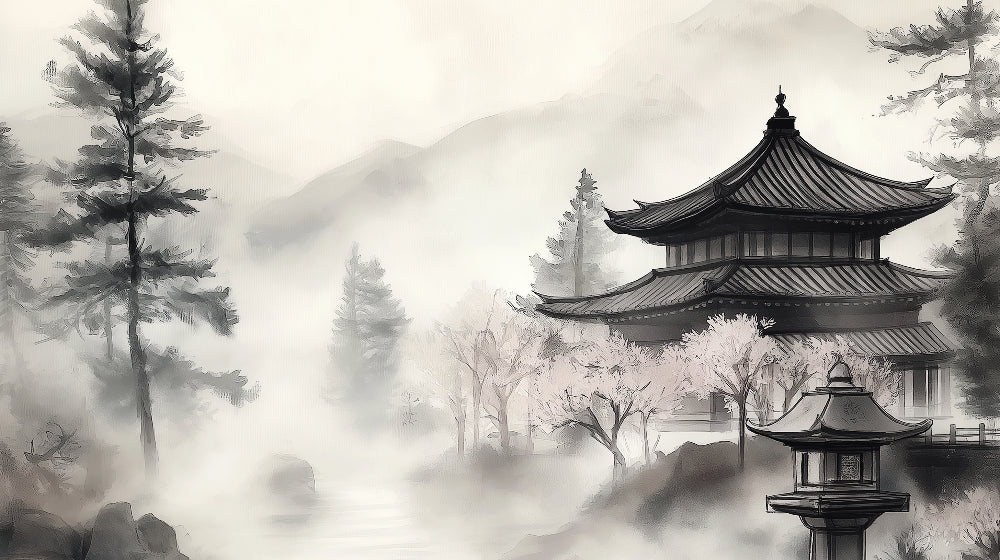 Ce papier peint de temple japonais apporte une énergie paisible à votre espace.