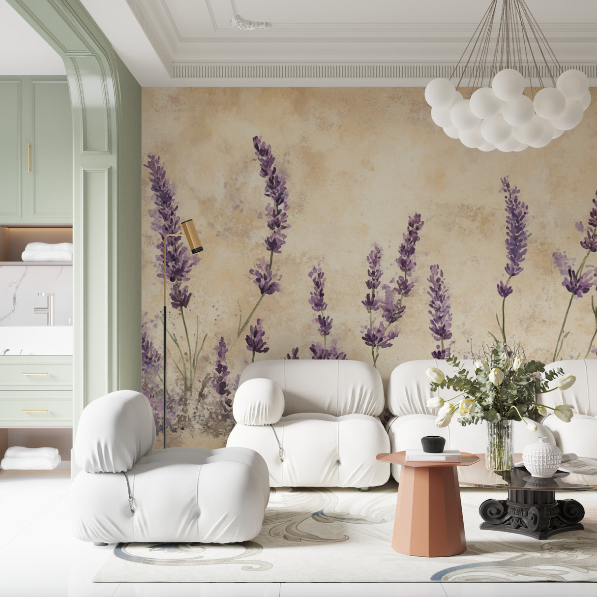 Les tiges violettes douces et les tons beige chaud créent un flux paisible dans tout votre espace.